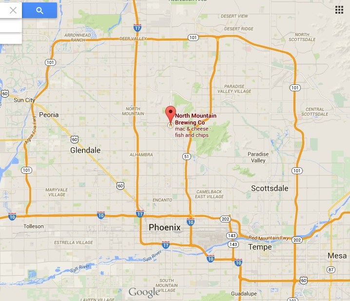 But of the fifty-plus microbreweries in Arizona, there are just above twenty of them in the greater Phoenix area. There is no bigger concentration of them in any other area of the state. So this blog will, out of necessity, have a longer string of Phoenix-based breweries than it will those of other cities. But, again, this does not mean I think any less of the rest of the state of Arizona. Be patient. I will come to your city soon. In the meantime I will start my journey in the concrete ant colony that is Phoenix with a fairly small, unassuming joint called North Mountain Brewing Company. North Mountain sits in the north-ish area of Phoenix, pretty far removed from other breweries.