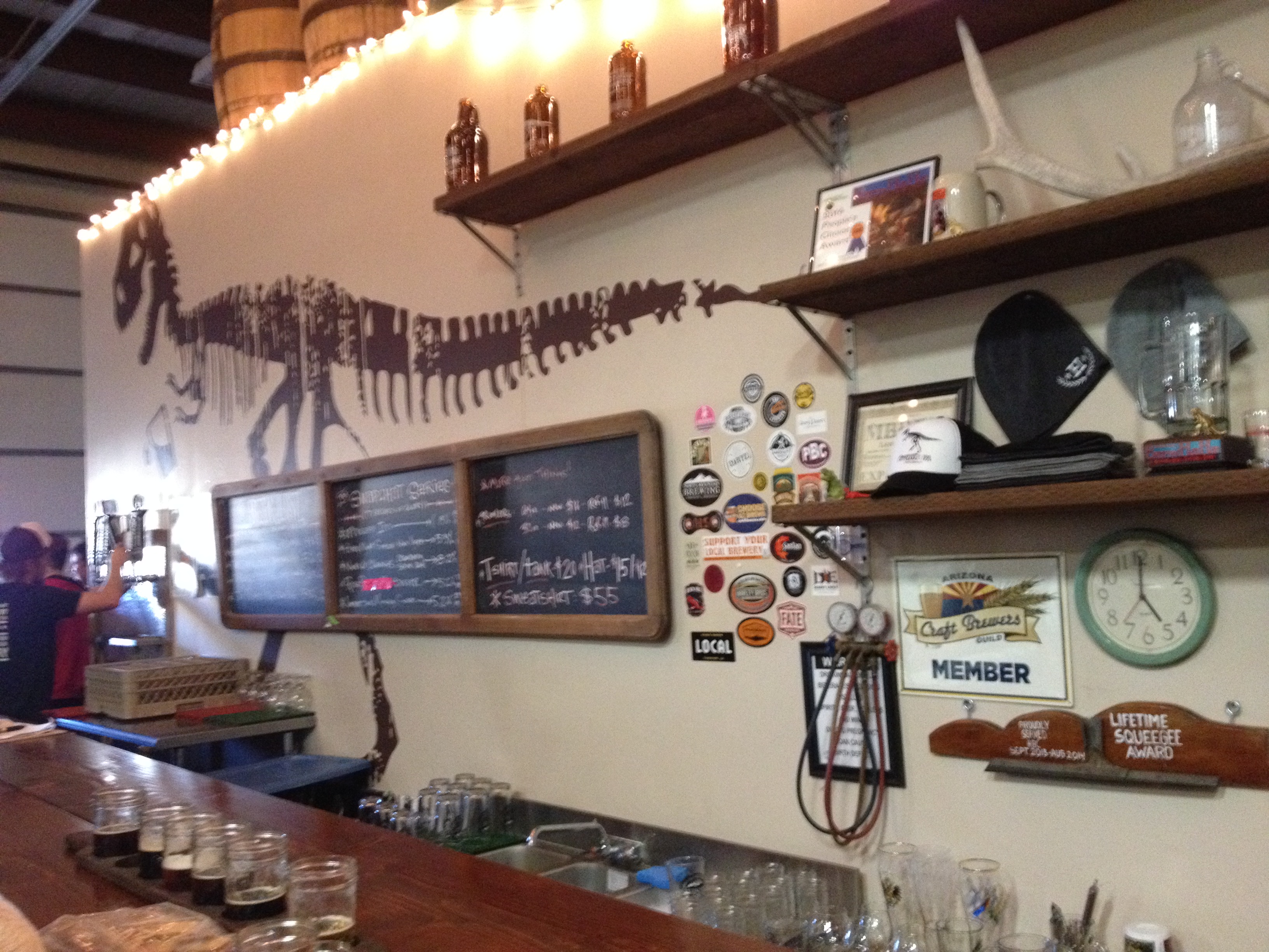 Anyway, the tap room at Historic was super cool. There was a T-Rex skeleton drawn on the wall and stickers from other Arizona-based microbreweries adorned a small area next to it.