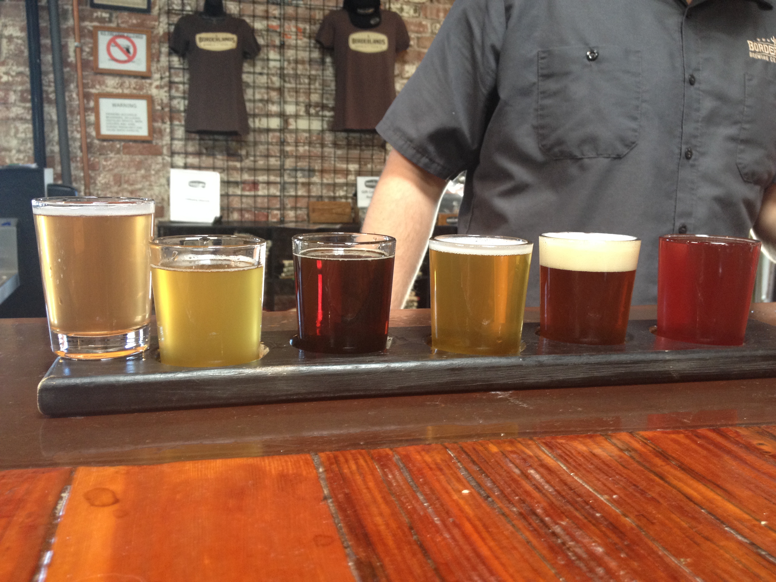 There are six beers on tap at Borderlands and a flight will run you a measly $8.