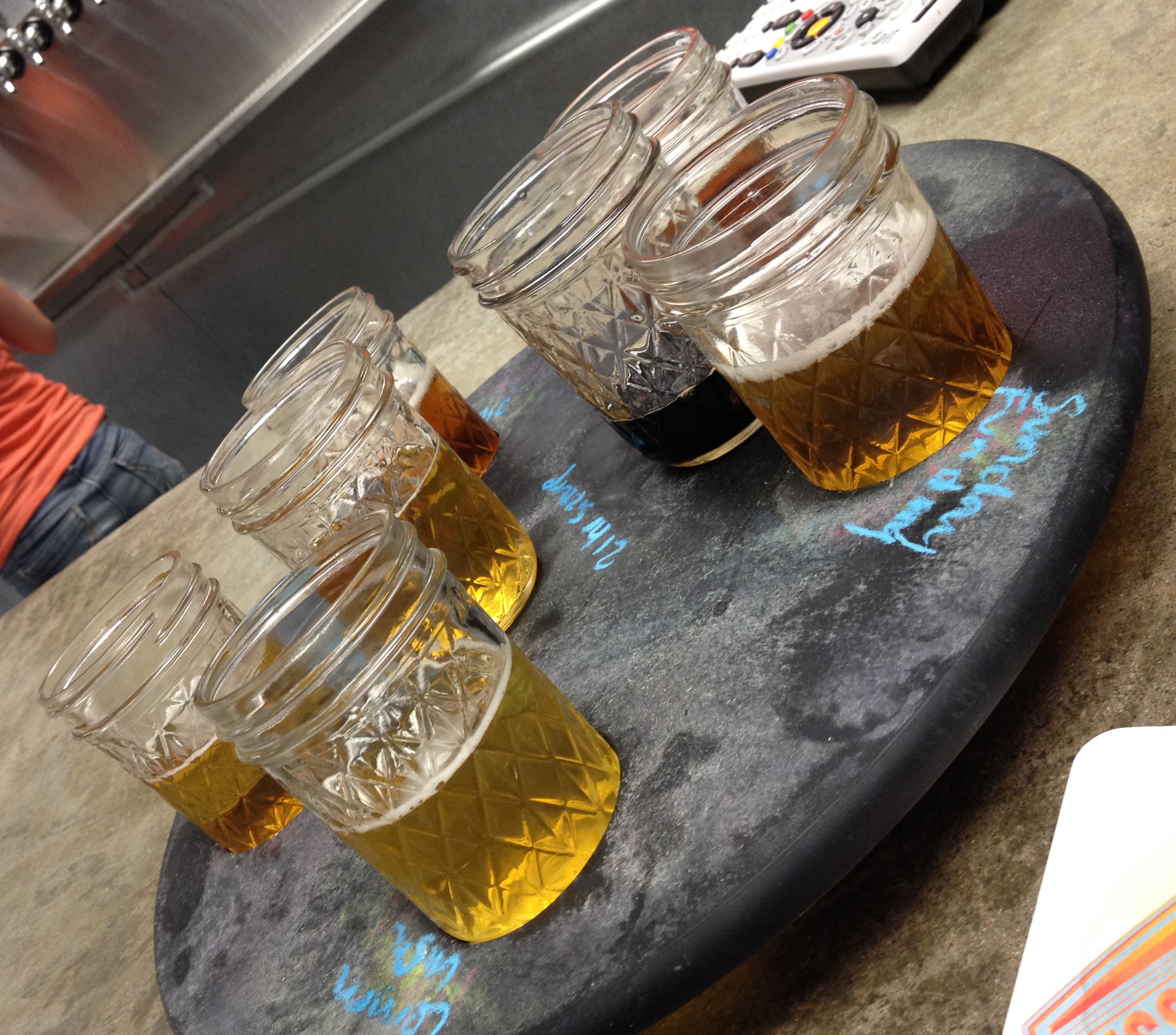 Huss’ flight was served on a cool, circular tray that spun around for easy access to all the drinks and the beer names were written on the tray in chalk. Detective Mustache spun the tray a few times and started at it quietly and broodingly, seemingly mesmerized by the sight of its turns.