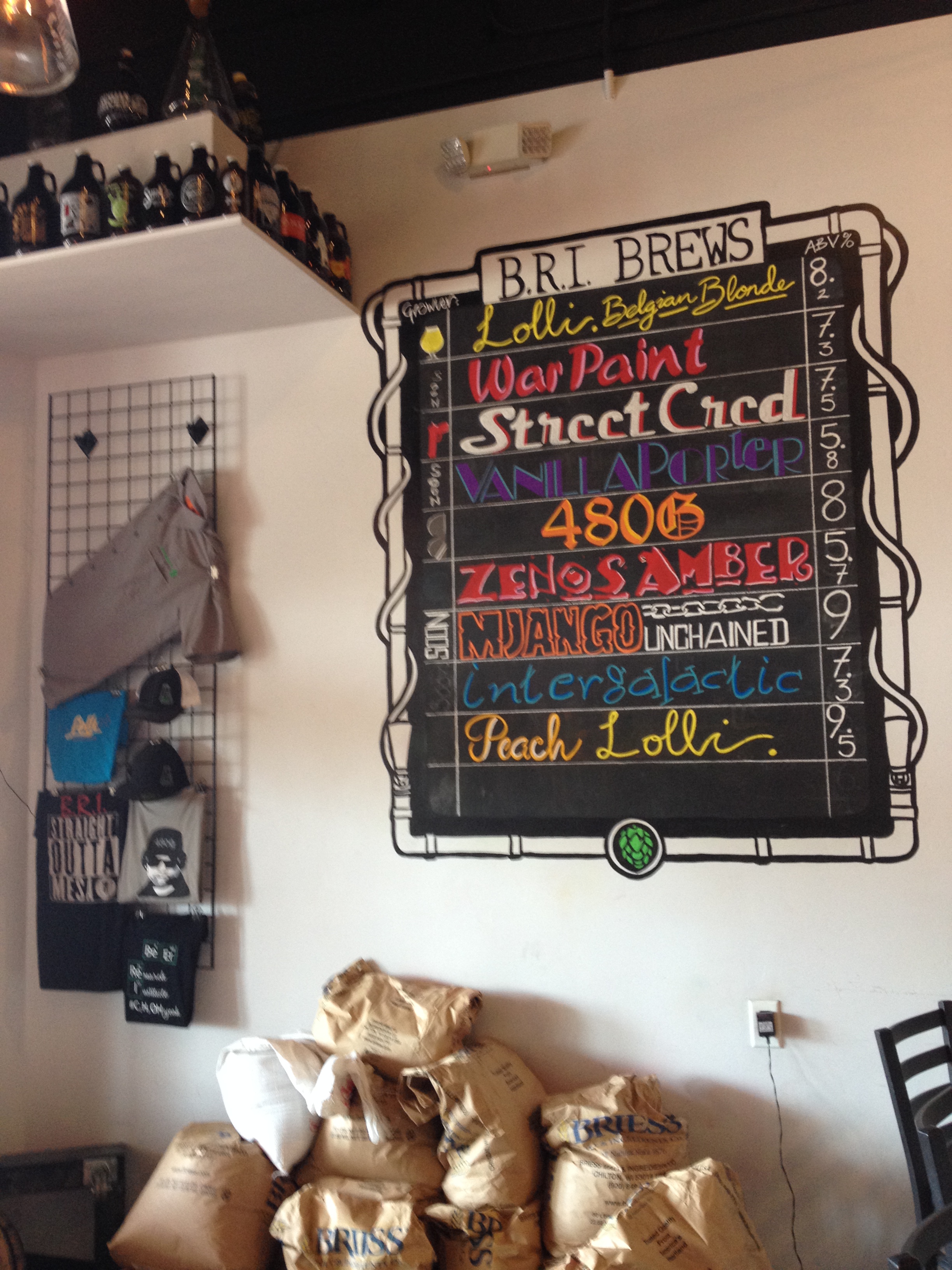 BRI, which is what we cool kids call it, has about 15 beers on tap and they currently brew 8 of them themselves. But on the day I went they only had 6 of their own beers on tap so we’ll only be talking about those today. They also offer wine and cocktails if you’re not a beer person and they make food if you’re looking for dinner before or after your shitty movie. Their food menu has some pretty standard brewpub fare like tacos, wings, sliders, salads, burgers and sandwiches. But a few of their offerings are a bit out of the ordinary like a poutine appetizer, a Cubano sandwich, an enchilada plate and green chili mac & cheese to which you can add machaca or carnitas.