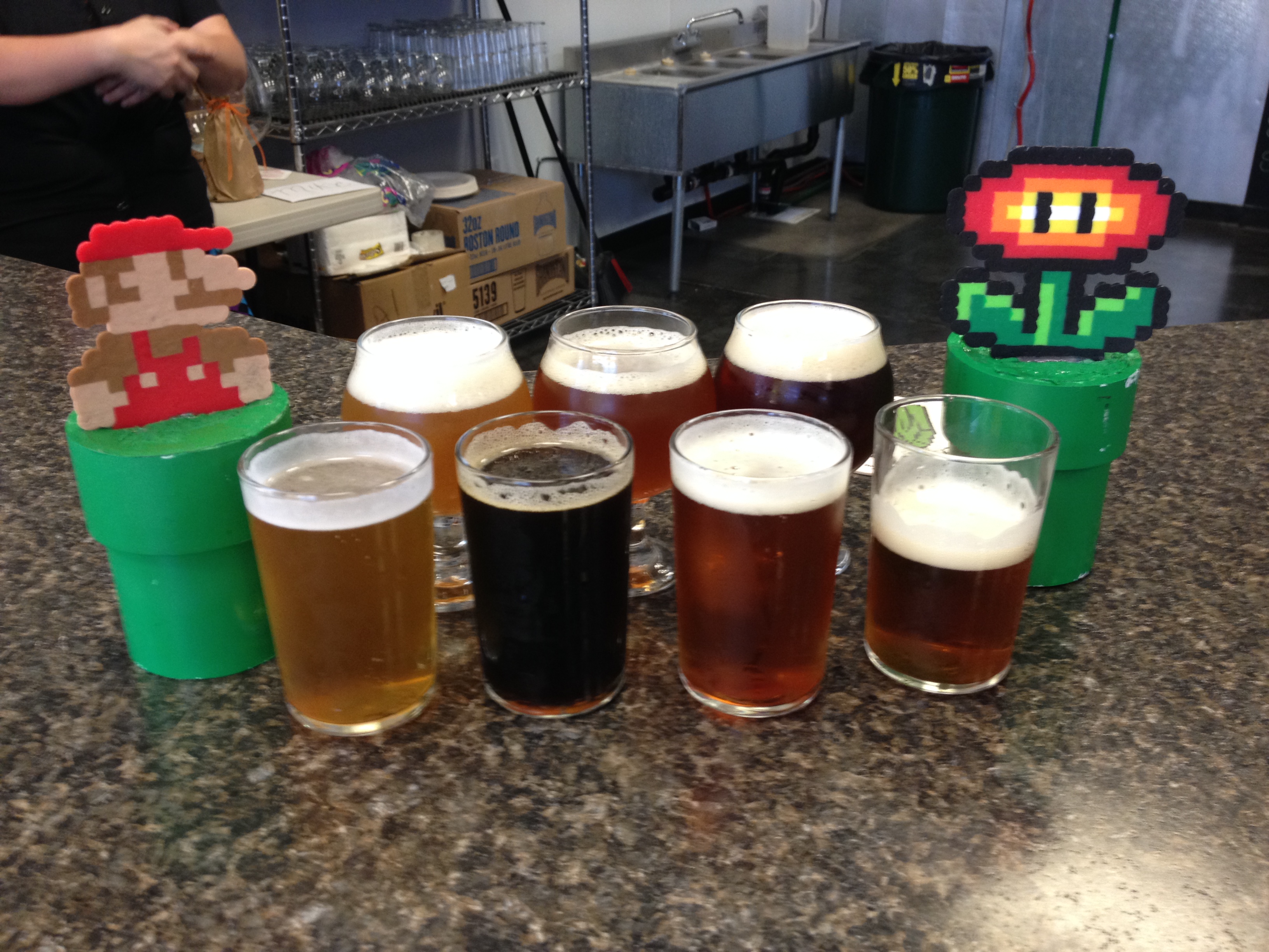 McCracken died in my arms. I saw the green tube come up from the floor beckoning me to the next level. It had the next beer on top of it. It was the Princess peach IPA. It was just what it sounded like: a peach-flavored IPA that was light enough on both the peach and hop flavors to complement each other. It wasn’t overly hoppy or overly fruity. It was a great addition to the 8-Bit brew selection.